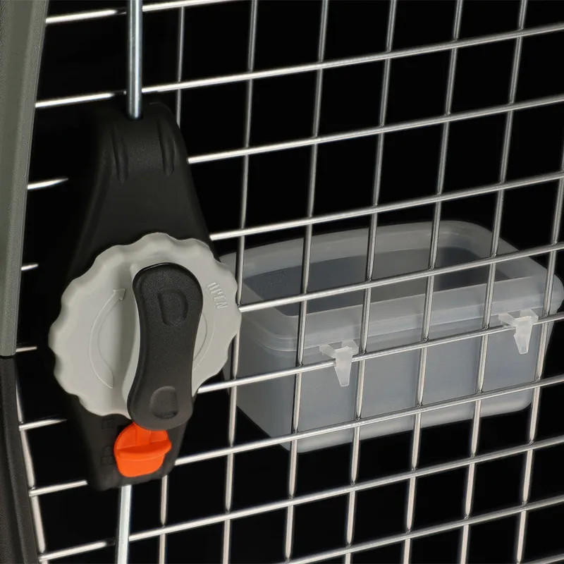 Spony po stranách přepravního boxu Kerbl IATA jsou uzamykatelné, stejně jako vysoce kvalitní kovová dvířka. Samotný box se skládá ze 100% recyklovaných plastových lahví a je vyroben se sníženým použitím fosilních zdrojů, díky čemuž je ekologickou alternativou. Na dvířkách přepravního boxu Kerbl IATA lze připevnit přiloženou misku, aby měl váš mazlíček během letu k dispozici dostatek vody.